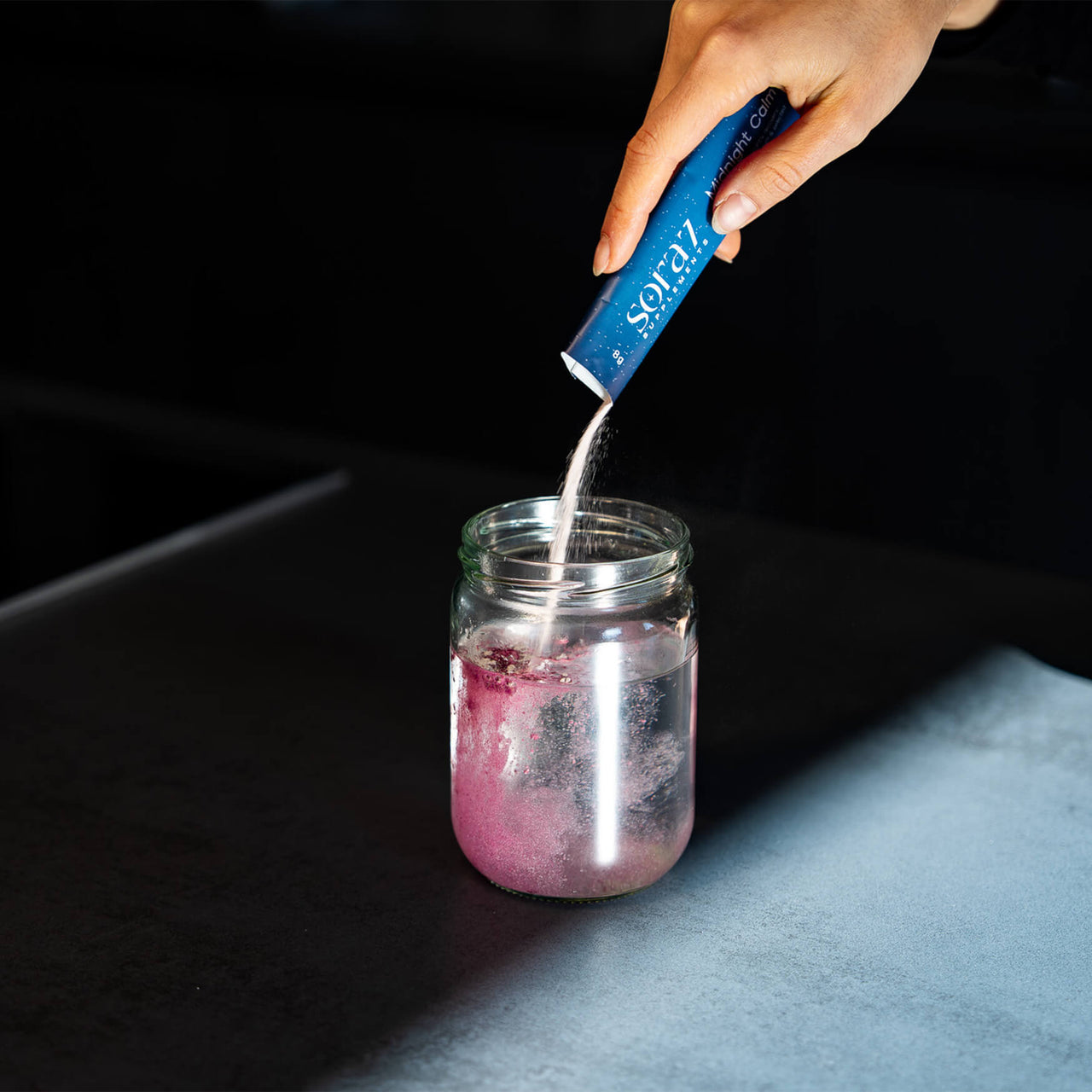 Nimm ein Sachet (8 g) Midnight Calm 30 Minuten vor dem Schlafengehen